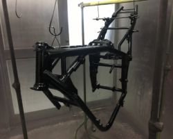 バイクの塗装には美しさを求められる外装の他に、耐久性が求められるフレーム、スイングアーム、ホイールなどの塗装もあります。